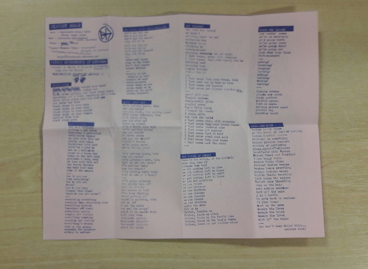 100 copies pressed on heavyweight black vinyl. Comes in a gatefold cover with screen printed front, paste on rear and insert. Each copy has individual one of a kind artwork.